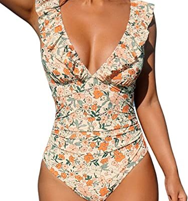 CUPSHE Vrouwen Badpak Een Stuk Plus Size Badpak Wrap Ruched Kriskras Zelf Tie Terug Bloemen