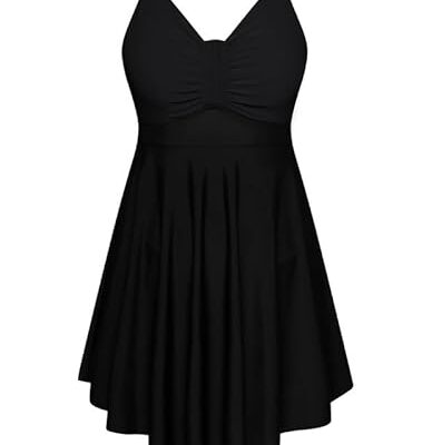 Hanna Nikole Badjurk voor dames, grote maten, eendelig, buikweg, badpak, vormende badmode, geruisloos zwempak, zachte strandmode met zwemshorts en verstelbare schouderriem, zwart, 54 Grote maten