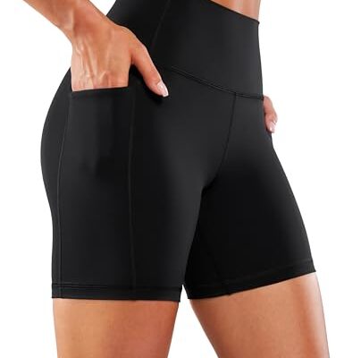 CRZ YOGA Naked Feeling Biker Shorts Met Zakken – 6″ Hoge Taille Yoga Shorts Voor Dames Fitness Running Shorts zwart M