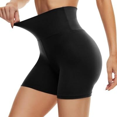 DDOBB Fietsbroek voor dames, korte shorts, onder jurk, hoge taille, sportshorts, buikcorrectie, onderbroek, hotpants, ondoorzichtige sportbroek, boxershorts, gym, legging, zwart, XS
