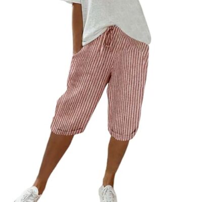 Dames Elastische Taille Gestreepte Casual Korte Broek Losse Shorts Katoen En Linnen Shorts Heren Pack, rood, S