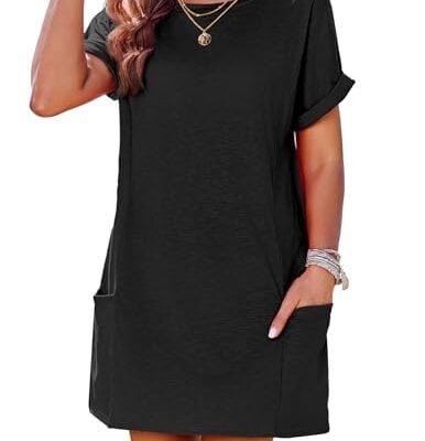 AI’MAGE Strandjurk voor dames, ruim, strandshirt, losse zomerbikini cover-up met zakken, strandponcho, S-XXL, zwart, S
