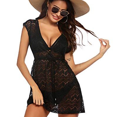 AI’MAGE Strandjurk voor dames, boho, weven, unieke bikini cover-up, zomerjurk, strandjurk, sexy peros badmode, 01 zwarte bladeren, XXL