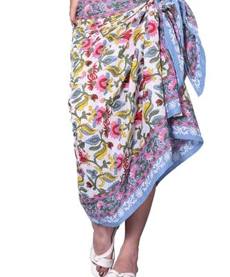 THE ART BOX Sarong, 100% katoen, cover-up voor vrouwen, Indiase hand-blok-print, over badpak, pareo, wikkelrok, voor strand, bikini cover-up, lang (185 x 110 cm), koraalrood, One size
