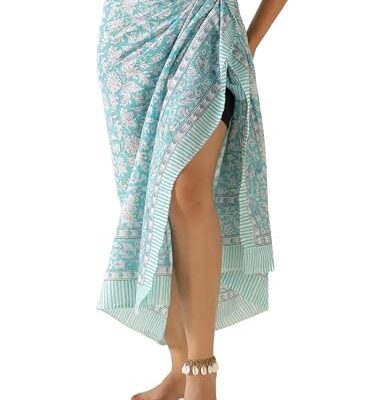 THE ART BOX Sarong, 100% katoen, cover-up voor vrouwen, Indiase hand-blok-print, over badpak, pareo, wikkelrok, voor strand, bikini cover-up, lang (185 x 110 cm), mintgroen, One size