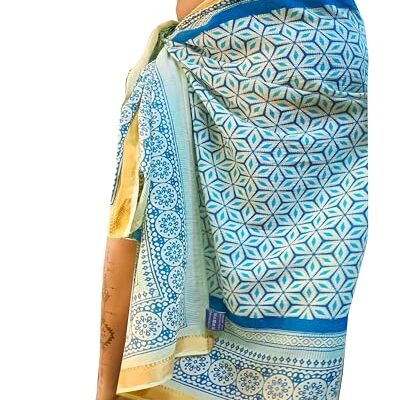 Pareo Strandlaken, katoen, groot, strandsarong voor dames, blokprint, natuurlijke kleurstof, wikkelrok, strandrok, wandtapijt, wikkeldoek, bikini, bedekking, over badpakken, Blok 6, One size