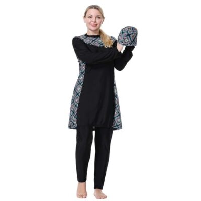 Generisch Moslim badmode voor dames, los, oversized badpak, bikini, volledige bedekking, zwemset, badpak voor dames, buikweg, grote maat beugel, zwart, 8XL