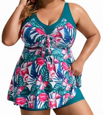 Bikini Dames Buik Controle Tweedelig Badpak V Hals Push Up Badmode Hoge Taille Bloemenprint Badmode Zomer Plus Size Badpak Top + Zwemshorts(Pink,XX-Large)