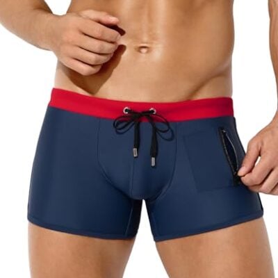 EDOTON Herenzwembroek jongens badmode sexy zwemshorts voor mannen zwembroek met ritssluiting trainingsshorts elastisch verstelbaar met trekkoord zwemshorts, marineblauw, M