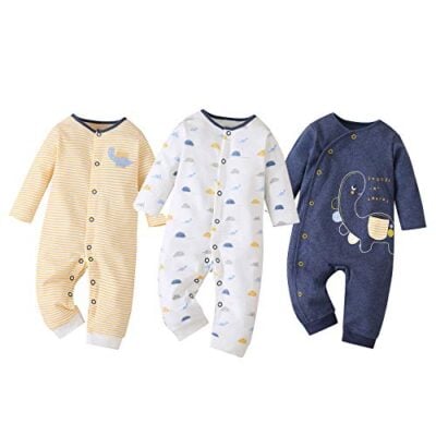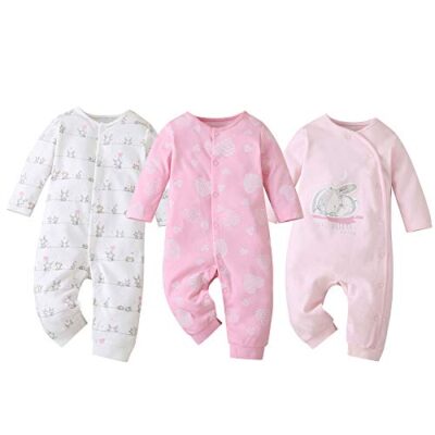 amropi Baby Meisjes Jongens Karton Rompers 3-Pack Lange Mouw Jumpsuit Eendelige Outfits voor 0-18 Maanden – multi – 2XS