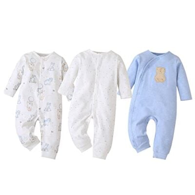 amropi Baby Meisjes Jongens Karton Rompers 3-Pack Lange Mouw Jumpsuit Eendelige Outfits voor 0-18 Maanden – – 3XS