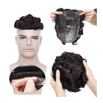 Herenpruiken Toupetje for heren 0,02-0,03 mm Ultradunne huid PU-basis Toupetje for heren 6 “× 8” Haarsysteem Eenheden 90% Dichtheid Wave Indian Human Hair Pieces voor Mannelijke Dagelijkse Slijtage