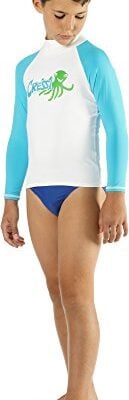 BSBUY Rashguard voor kinderen, UPF50+ bescherming, blauw zwemshirt met opstaande kraag, UV-shirt, uniseks, strandbadshirt, watersporttop, sneldrogend, ademend, zwempak, surfen (130-150), Fluorescerend