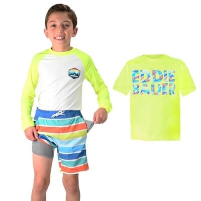 Eddie Bauer Jongens UPF 50 korte en lange mouwen shirts met Comfort Liner Trunk 3-delige Swim Rash-Guard-set, limoen, 10-12