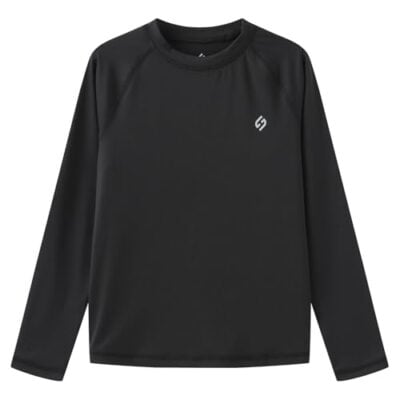 HODOSPORTS Jongens UPF 50+ Rash Guard Zwemshirts Korte Mouw Sneldrogend UV-bescherming Zonneshirt, Zwart, 12-14 Years