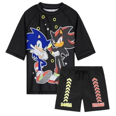 Get Trend Sonic the Hedgehog Badpak Set voor Jongens Shadow 2-delig met Zwembroek Jongens Rash Guard om te zwemmen (5-6 jaar, Black Sonic)