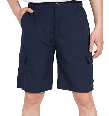 ALXHUTE Lichte korte broek voor jongens, cargoshorts, sneldrogend, korte cargobroek, jongens, zomer, bermuda, donkerblauw, 160 cm