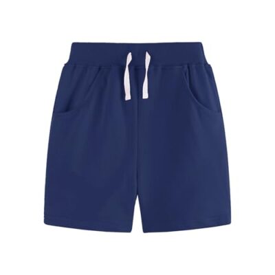 NLAND Jongensshort effen kleur bermuda’s van katoen, sportkleding voor kinderen van 3-8 jaar, Blauw, 7-8 Jaren