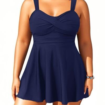 Aqua Eve Plus Size Tankini Badpakken voor Vrouwen Tweedelig Badpak Flowy Zwemjurk met Shorts, donkerblauw, 18 Große Größen