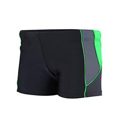 Aqua Speed Zwembroek kinderen jongens + gratis e-book | zwembroek voor jongens | zwembroek | boxzwembroek | Swimwear Boy, 138. zwart / H.groen / grijs – Max, 152