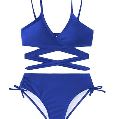 Arshiner Meisje Effen Bikini Set Tween Meisje 2 Stuk Badpak Badmode met Trekkoord Kid Zwemmen Kostuum Badpak 6-14 Jaar, Indigo, 140
