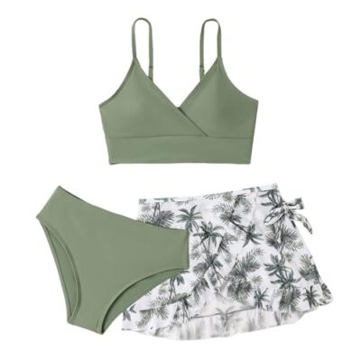 Rswnyirn 3-delig meisjes bikini tankini set badkleding bustier met slip rok badpak zomer badmode swimwear, groen, 146-152
