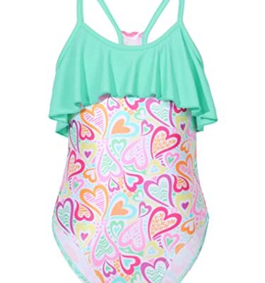 Gogokids Eendelig badpak voor meisjes, zwemkleding, ruches, strandkleding, badkleding, badkleding voor zwemmen, surfen, boottochten, waterpark, zwembadfeest