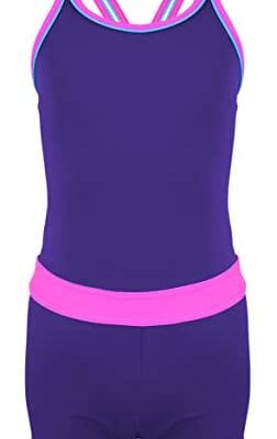 Aquarti Meisjes Sportbadpak Shortybadpak met Racerback, Paars/Roze, 152