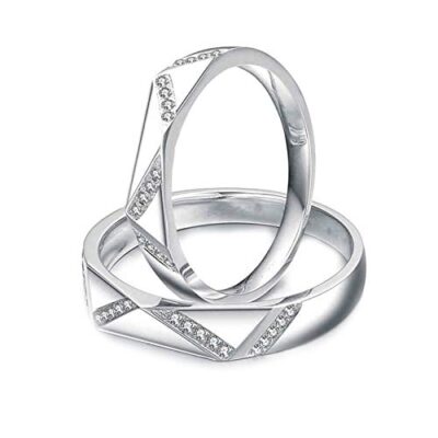 Daesar 18kt gouden ring voor dames en heren ringen bruiloft vintage verlovingsring set geometrisch met 0,11 ct verjaardag ringen diamant verjaardag band wit goud, 18-karaats witgoud, Diamant