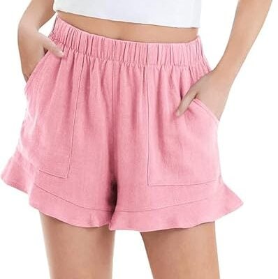 Haloumoning Meisjes Shorts Zomer Casual Sweatshorts Kinderen Schattige Ruches Strand Effen Shorts, roze, 11-12 Jaar