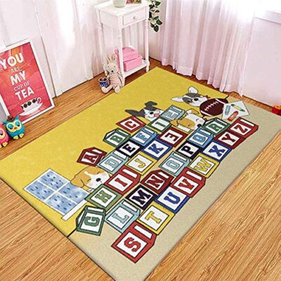 Kids Play Tapijten Grote Play Mat Baby Zachte Duurzame Tapijten Leuke cartoon hond met kleurrijke alfabet blokken Woonkamer Home Decor Tapijten Voor Jongens Meisjes Slaapkamer 200X300CM