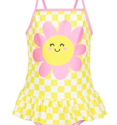 Harry Bear Meisjes Badpak | Bloemen Badpak | Geruit Zwempak Voor Meisjes | Meisjes Zwemkleding | Geel 92