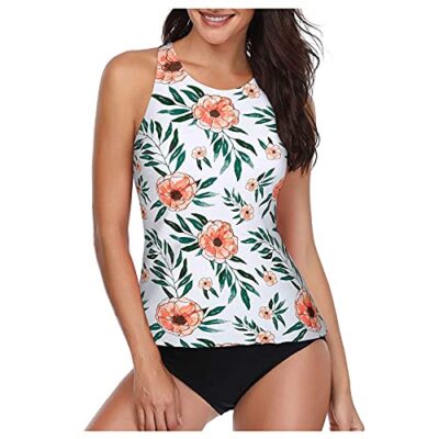 Laorchid Tankini voor dames, tweedelig, push-up, tweedelig badpak, gevoerd, badmode, hoge taille, badpak, bikini, sportief, regenboog Bohemen, 40