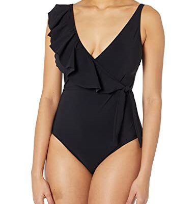 Profile by Gottex Dames Tutti Frutti V-hals schouder Ruffle badpak uit één stuk, zwart, 36, Zwart, 40