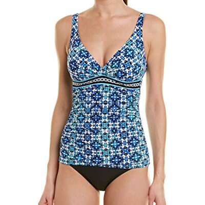 Profile by Gottex Dames Collage D Cup V-hals Tankini Top, Collage Multi Blauw, 70D