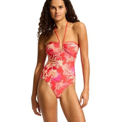 Seafolly Badpak uit één stuk bandeau halter voor dames, Marbella Vlam, 40