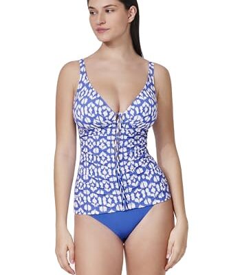 Profile by Gottex Dames Mantra Gevlochten V-hals D-Cup Top Tankini-Top, Hamptons Blue, (44) D