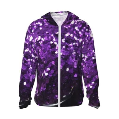 Mooie paarse glitter heren zon shirts UPF 50+ zonbescherming hoodie jas lange mouwen Rash Guard, Zwart, L