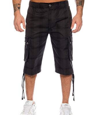 Kendindza Bermuda voor heren, met elastische tailleband en cargozakken, van 100% katoen, XL