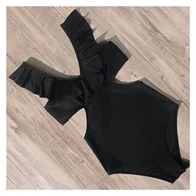 pingping Ruches een stuk durf badmode dames 2022 monokini zwempak plus size push -up badpak sexy hoge taille bodysuit (Color : B4794BK, Size : M)
