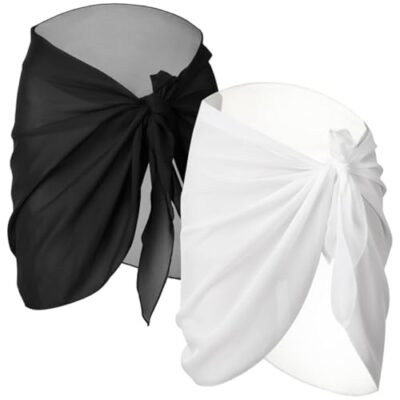 AVAYUU 2 stuks dames strand wrap sarong bedekking chiffon badpak korte bikini cover-up wikkelrok luipaard bladeren kokospalm sexy pareos strandhanddoek zomer L-XXL, zwart/bruin, One size