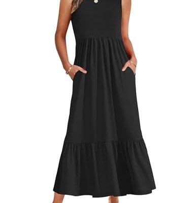 AUSELILY Zomerjurken voor Vrouwen Mouwloze Maxi Jurken Dames Strandoverall Zonjurken Soepel Vallende Lange Jurk met Zakken Zwart M