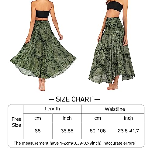 1 stuk lange bedrukte rok voor dames, chiffon bohemien, rok voor dames, lange boho, lange bedrukte rok, rok voor dames, zomer, vakantie, zomerrok, strandjurk (eenheidsmaat), groen, M/L