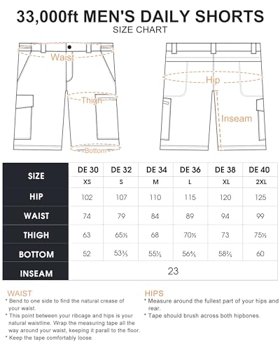 Shorts voor mannen: 33,000ft wandelshorts voor heren, verborgen elastische tailleband met geïntegreerd trekkoord. Maakt 4 cm-8 cm rek mogelijk. SBS-ritssluiting, de kwaliteit van de ritssluiting is zeer goed, hij blijft niet gemakkelijk vast te zitten