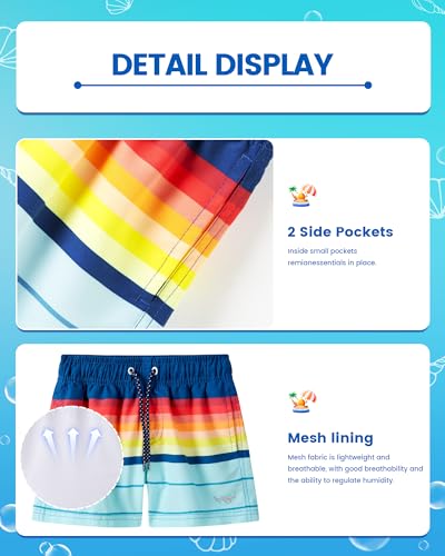 Bescherming tegen de zon: de stof van deze zwembroek heeft een classificatie tot UPF 50+, biedt maximale UV-bescherming, blokkeert 98% van de schadelijke uva en uvb, waardoor de huid van je kind wordt beschermd, zelfs als de zwembroek nat is. Deze zwembroek voor jongens is ontworpen voor jongens, met de schattigste kleuren en patronen, verwijzend naar de favoriete zwemkledingstijlen van jongens. We hebben ananas, regenbogen, strepen, ijs, donuts, flamingo’s en kokospalmen. De losse pasvorm van de zwemshort laat je jongen opvallen op het strand.