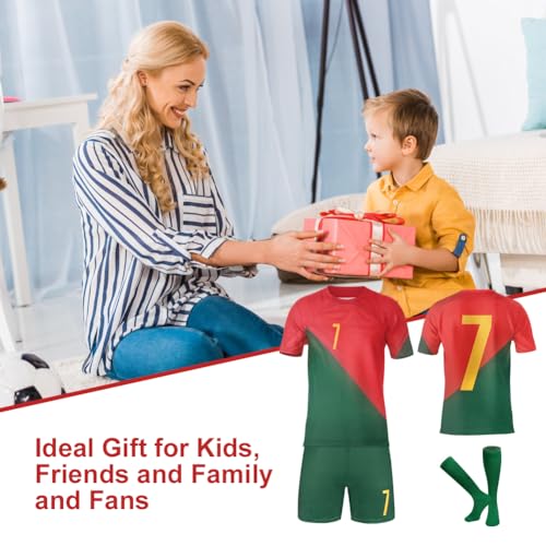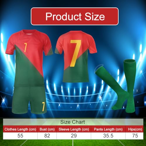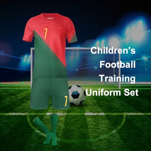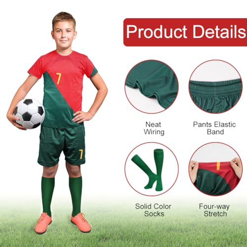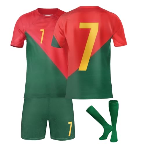 Aomig voetbalset voor kinderen, voetbalshirt voor kinderen, voetbalshirt trainingspak, outdoor voetbaltrainingsset T-shirts, shorts en sokken voor jongens (nr. 7, rood)