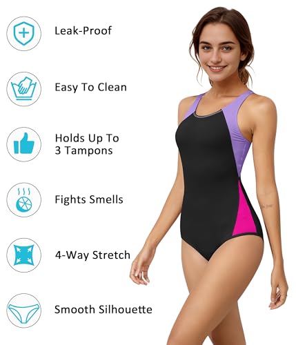Menstruatie zwemkleding: Ziet eruit en voelt aan als een gewoon stuk badpak. Klassiek racerback trainingsbadpak is perfect voor strand en zwembad, sport, vakanties en huwelijksreis.