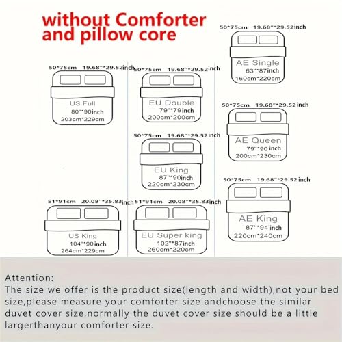 BEDDING SET INCLUDES – 1x duvet cover; 2x pillow sham. Without comforter. 6 Sizes to choose from. Please carefully read and check the detail size before purchase.