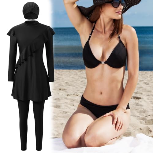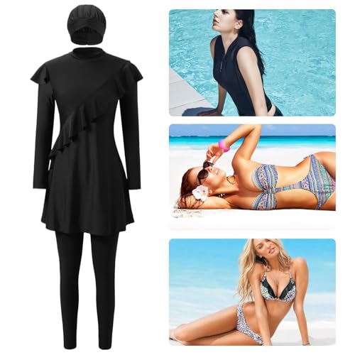 Alomvattende dekking: Dit badpak combineert conservatieve dressing met ademend comfort en heeft uitgebreide dekking en een hoofddoek met capuchon, gemaakt van lichtgewicht stof voor ideaal gemak tijdens zwemmen of loungen activiteiten