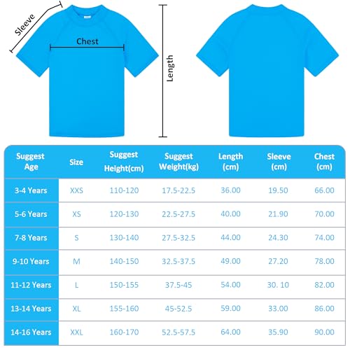BIG ELEPHANT 3 Pack Kids Korte Mouw Rash Guard Shirt UPF 50+ Bescherming Badmode Sneldrogend Zwemmen Tee Jeugd Rashguard, Neon Groen/Hemelsblauw/Saffier Blauw, 7-8 jaar